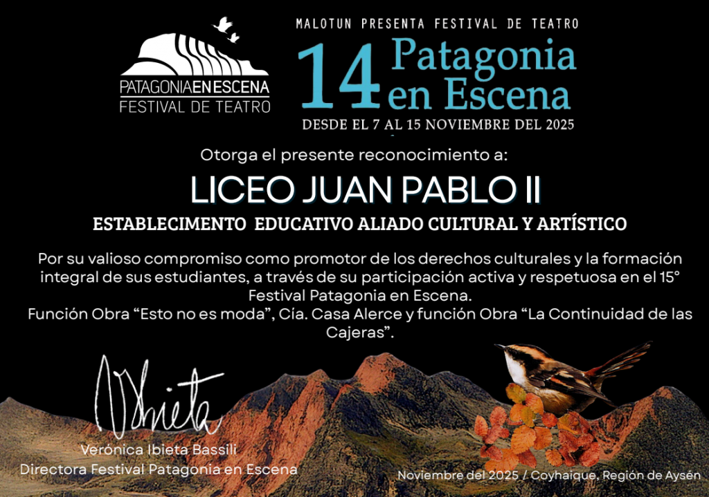 Con mucha alegría compartimos que los cursos 3° Medio E y 1° Medio A asistieron al festival “Patagonia en Escena”, instancia donde pudieron disfrutar de hermosas obras de teatro que despertaron emociones, reflexiones y un profundo acercamiento al arte y la cultura.