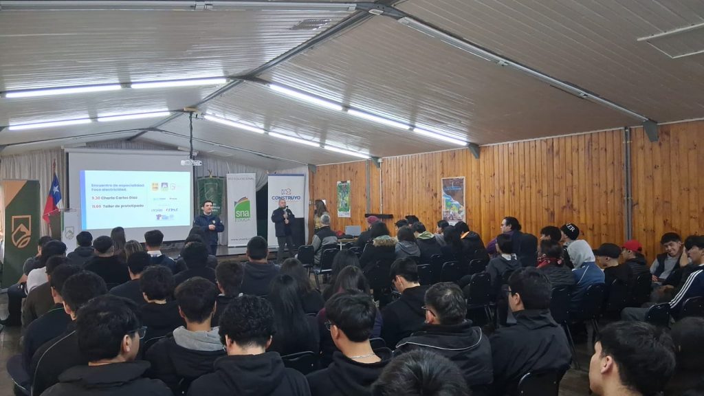 El dia 7 de Octubre, estudiantes de 3ro y 4to medio de la especialidad de Construcción Mención Obras Viales, participaron de una charla llamada “Desarrollo sustentable desde Aysen” donde el relator Carlos Diaz, les dio a conocer como Aysen a través de distintos emprendimientos pretende llevar a cabo energías renovables y sustentables, debido a la problemática energética de la región, posterior a ello, participaron en un “Taller de innovación Prototipado” enfocado en buscar soluciones a la problemática energética.