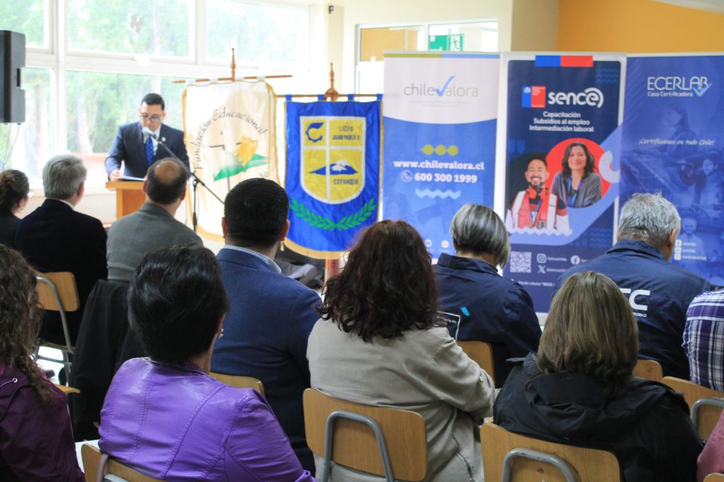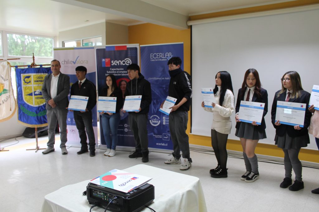 El pasado miércoles 3 de diciembre vivimos una jornada muy especial en el Liceo Técnico Profesional Juan Pablo II, con la ceremonia de certificación de competencias laborales, una iniciativa impulsada por el Ministerio del Trabajo y Previsión Social, SENCE, Chile Valora y el Centro Evaluador ECERLAB Ltda.